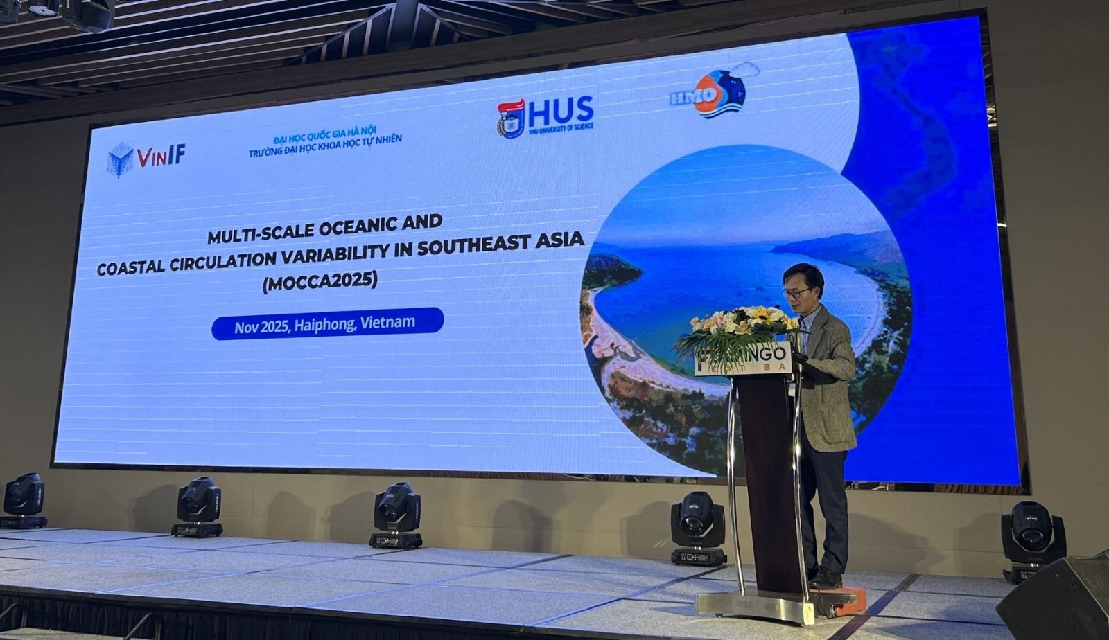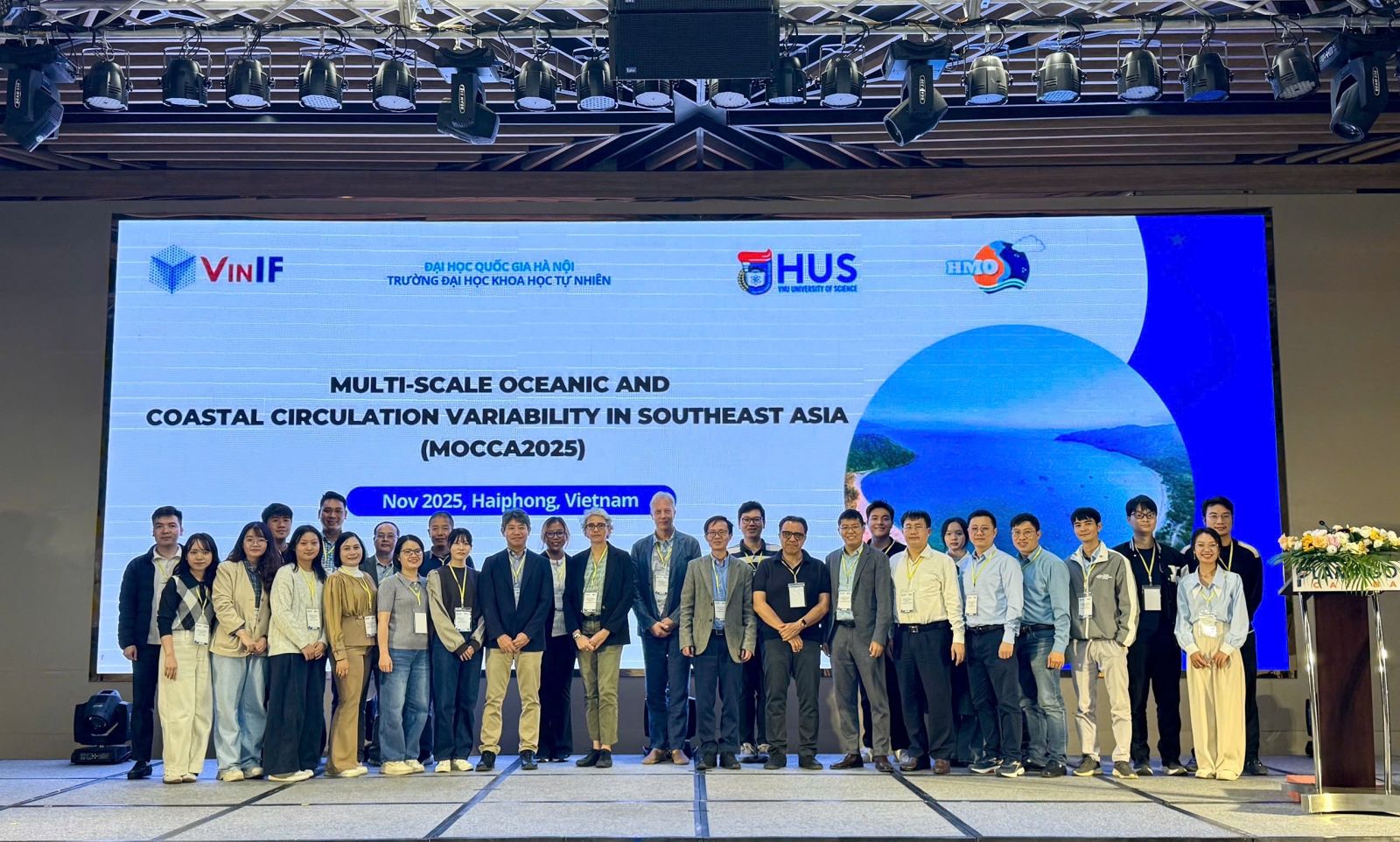 Trong 2 ngày, 21-22/11 tại Flamingo Cát Bà - Hải Phòng, Khoa KTTVHDH đã chủ trì tổ chức thành công Hội thảo khoa học quốc tế “Multi-scale Oceanic and Coastal Circulation Variability in Southeast Asia - MOCCA 2025”. Đây là Hội thảo khoa học trong khuôn khổ dự án VINIF2023.DA151 (quỹ VINIF tài trợ) do PGS.TS. Nguyễn Kim Cương - Trưởng Bộ môn Khoa học và Công nghệ Biển làm chủ nhiệm. Hội thảo đã đón nhận sự tham gia của các đại biểu đến từ các quốc gia: Việt Nam, Nhật Bản, Pháp, Hoa Kỳ, Thái Lan và Australia cùng với nhiều cơ quan nghiên cứu, quản lý tại Việt Nam.