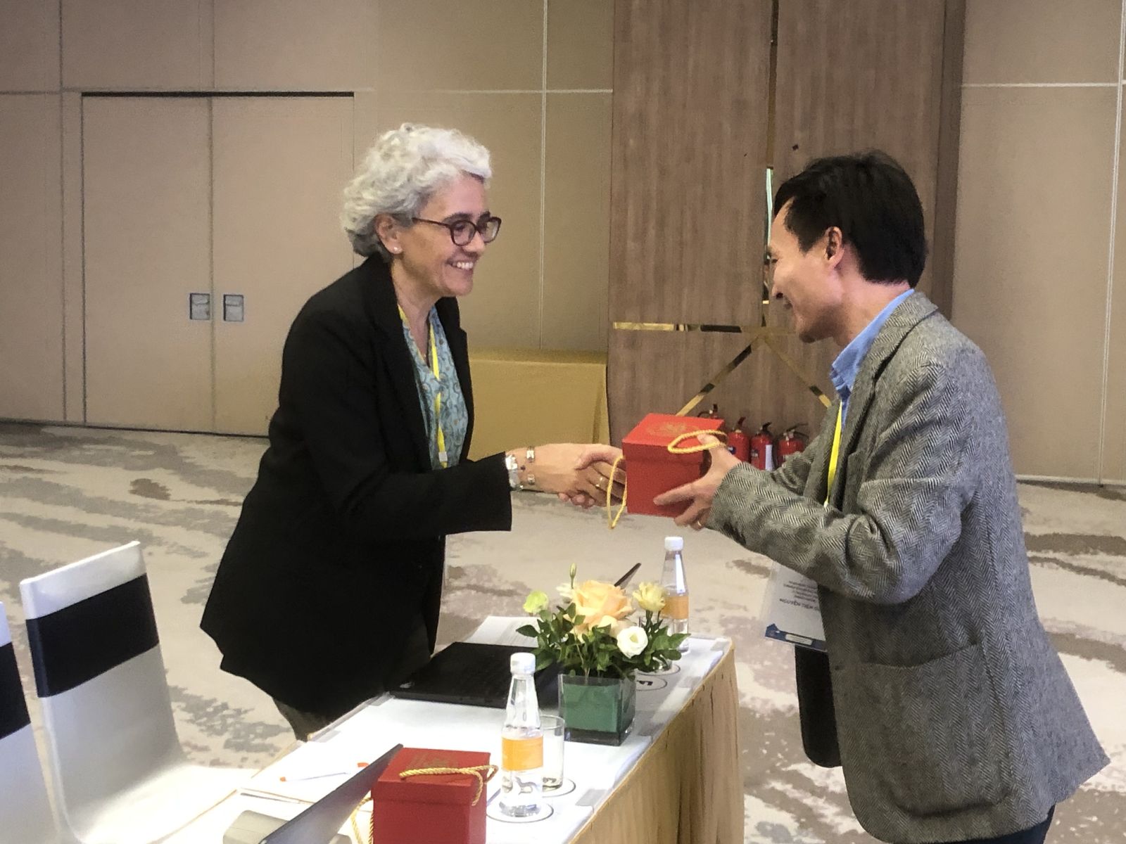 PGS.TS Nguyễn Tiền Giang tặng quà lưu niệm cho TS. Nadia Ayoub (LEGOS, Pháp)